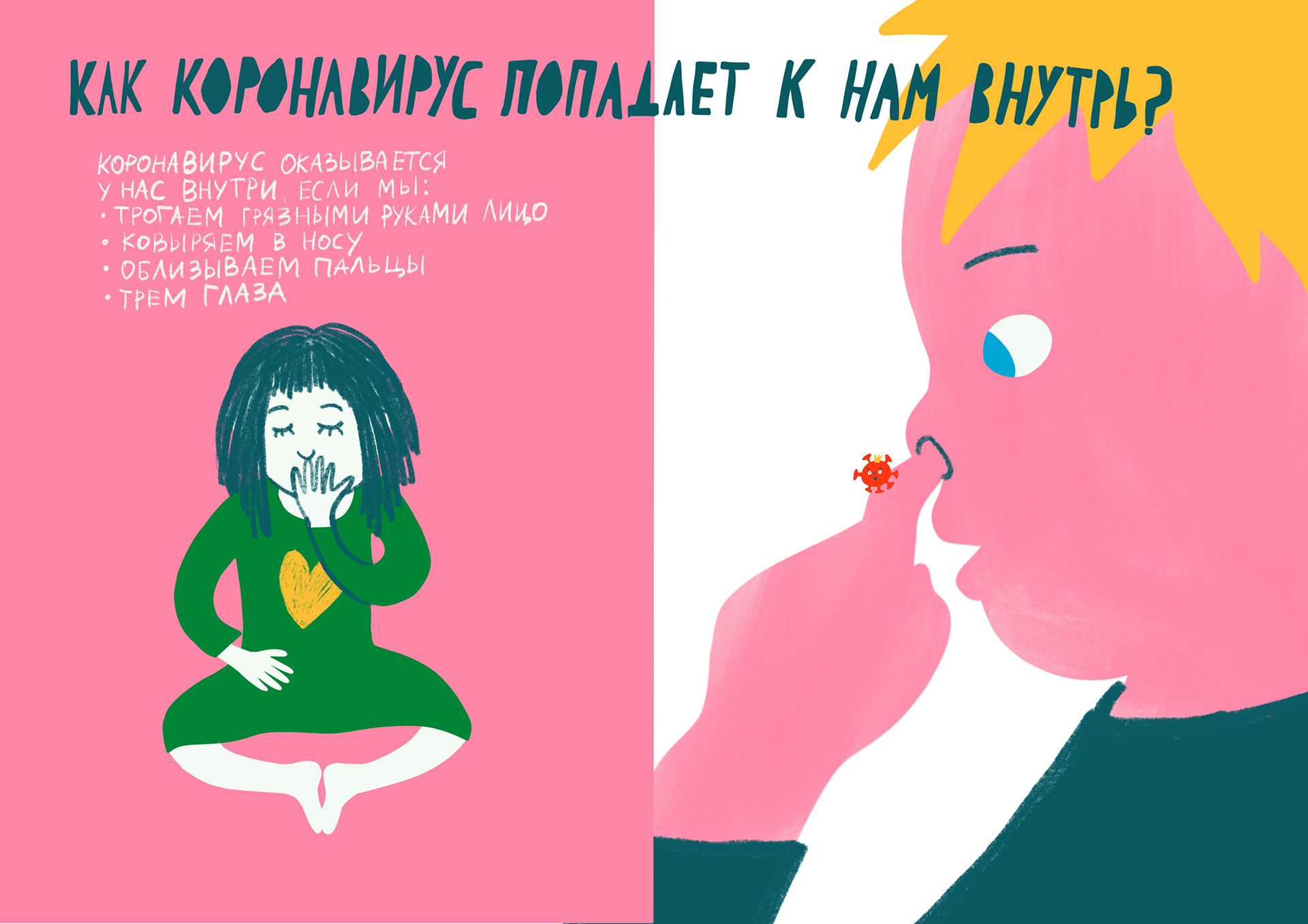 Non-fiction picture book for little ones, explaining what coronavirus is and the main issues related to it, as well as instructions on how to behave correctly.